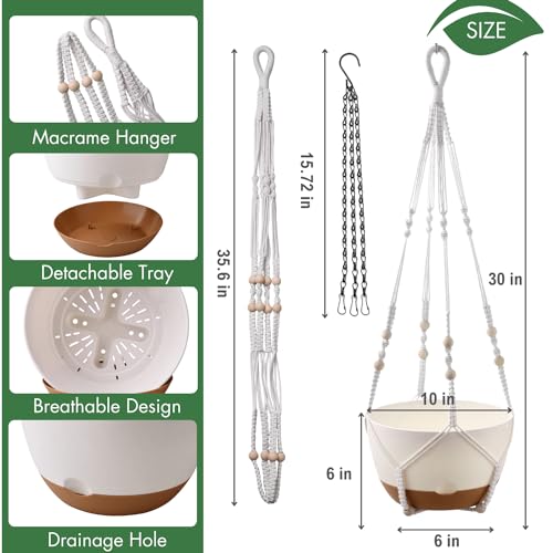 【Versatile Plant Hangers Options】Choose between a sturdy metal hook or a chic, modern bohemian-style hanger to customize your indoor decor and showcase your plants in style with our hanging pots for plants indoor 10 inch. Metal hooks are suitable for outdoor use, resilient against wind, rain, and sun exposure. Meanwhile, the bohemian style plant hangers option is good for indoor settings.
