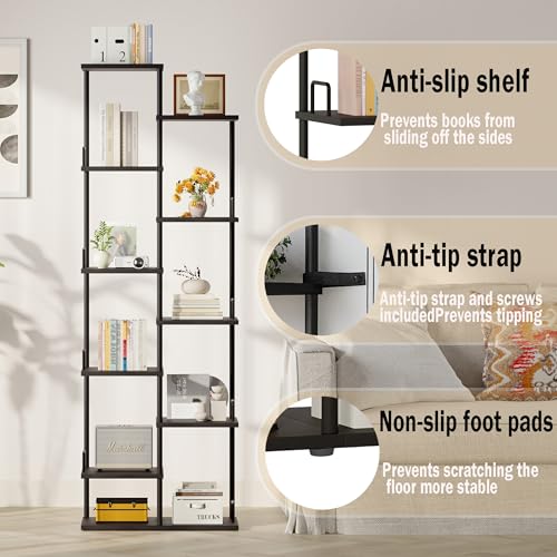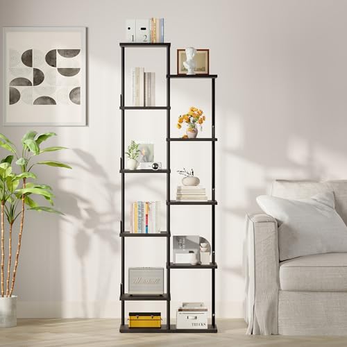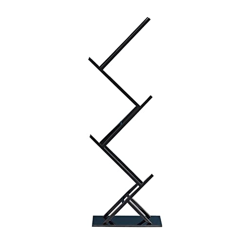 10 Tier Tree Bookshelf Tower Metal Spine Bookcase Industrial Bookshelves Tall Narrow Books Organizer Floor Standing Ladder Book shelf for Living Study Room Office Bedroom Corner Display black HBC506B