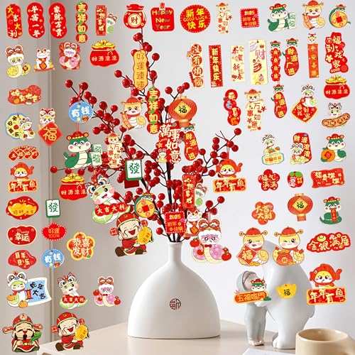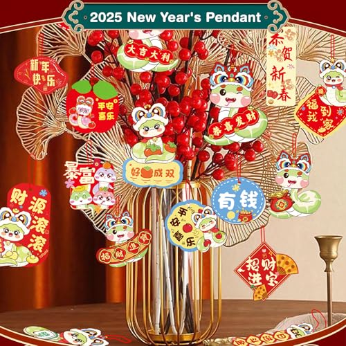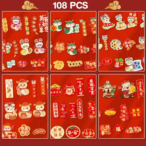 108 Pcs Lunar New Year Ornaments, Snake Spring Festival Tree Decoration, Red Chinese Pendant Traditional Lucky Hanging Fu Decal for Spring Festival Chinese Lunar New Year Pendant Decoration