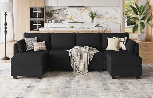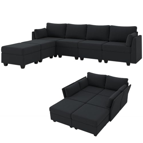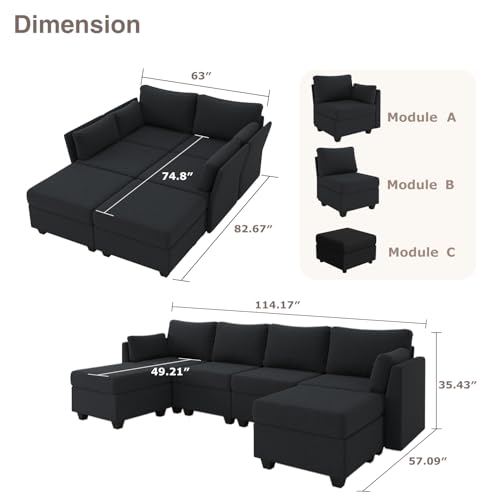 114.17″ Modular Sectional Sofa, 6 Seat Sectional Couches with Storage, Memory Foam, Convertible Modular Couch for Living Room, U Shaped Comfy Modular Sofa with Chaise, Black