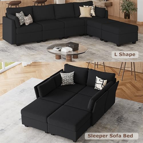 Soft and Comfy: This modular sleeper sofa is covered in breathable, high-quality fabric. Its high-density foam cushions resist deformation, while the optimal seat width and depth ensure relaxation for most body types, making it perfect for any living room