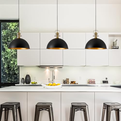 12 Inch Black Farmhouse Pendant Lights Matte Pendant Lights for Kitchen Island Industrial Adjustable Height Vintage Dome Hanging Light Fixtures for Barn, Dining Room 3 Packs