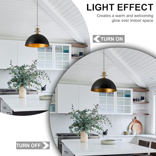[Industrial & Vintage Design]: 3-Light industrial farmhouse pendant light fixtures with adjustable cord, mattle black finish featuring retro-style dome shade, this antique pendant lighting is made of sturdy metal construction in black finish and inner gold finish.The vintage pendant lights is ideal for home, dining room, kitchen island, warehouse, entryway, corridor, restaurant, cafe, bar, club, barn, working bench.