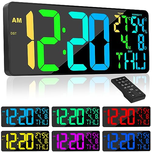 【 Top Pick for a Home Gift】Our colorful wall clock digital makes an excellent gift,as it adds a stylish touch to a variety of indoor spaces—including the living room,bedroom,office,studio,game room,man cave,gym,farmhouse,warehouse,classroom,or sports room.It’s also a thoughtful gift for friends,loved ones,and seniors.