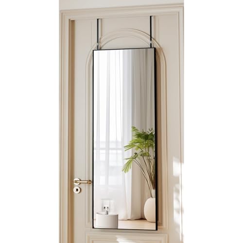 16″ x 50″ Adjustable Height Over The Door Mirror – Rectangular Full Length Hanging Door Mirror with Shatterproof Tempered Glass Black Metal Frame for Dormitory