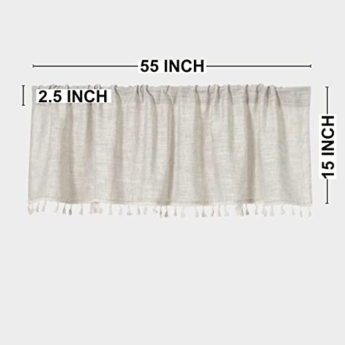 2 Pack Boho Tassel Kitchen Valances for Windows Modern Farmhouse Cotton Linen Valance Curtains Topper Country Rustic Bathroom Small Window Treatment Bohemian Decor (55×15 inch, Natural)
