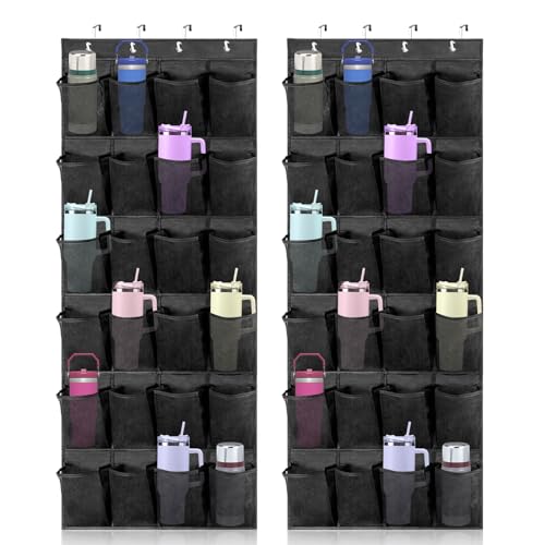 2 Pcs Over The Door Water Bottle Organizer for Stanley, Multi-Functional 24 Pockets Water Bottle Organizer for Door, Foldable Wall-Mounted Design, Over The Door Cup Holder for Kitchens and RV