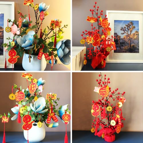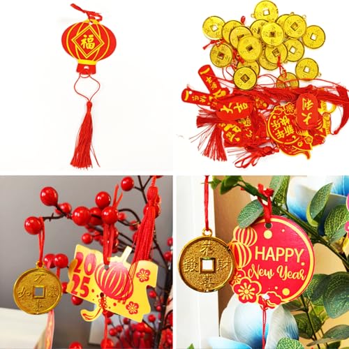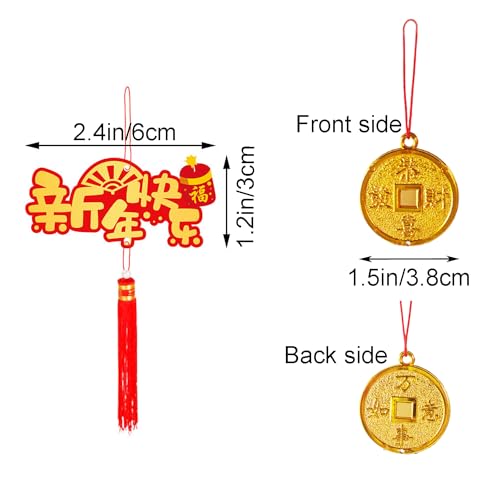 Package Contents:It include 10 pcs Chinese new year hanging cards ornaments with 10 different patterns and 20pcs hanging coins, Total 30pcs/Package, enough quntity and patterns for you to decorate New Year party