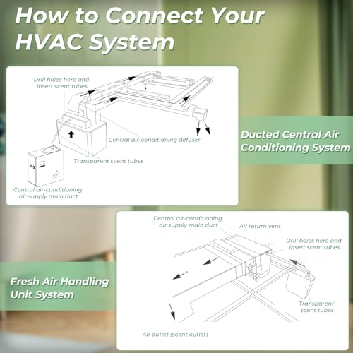 MESS FREE & NOISE FREE: The Aromadd essential oil diffuser is designed to leave no mess or residue in your room, unlike other cheap household scent diffusers. It features a silent atomizer that allows you to relax without any noise disruption. The Aromadd diffuser can be easily installed on any wall or floor, and its unique design allows for seamless connection with your HVAC system