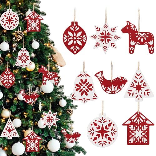 Christmas Tree Ornament Set: our scandinavian ornaments for christmas tree set includes 24 wooden ornaments in 12 different styles; These ornaments include snowflakes, stars, hearts, reindeers, and more, suitable for adding a touch of class to your holiday decor; These Christmas tree hanging decorations come in a variety of shapes and sizes, adding a visual flourish to any Christmas decor; They elevate Scandinavian minimalist style to a new level