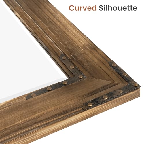 24″ x 36″ Rustic Wood Bathroom Mirror, Industrial Farmhouse Vanity Wall Mirror with Metal Accents, Rectangle Decorative Mirror for Entryway or Living Room, Walnut Brown