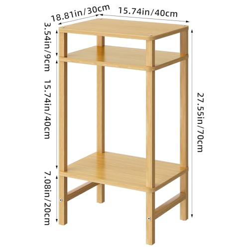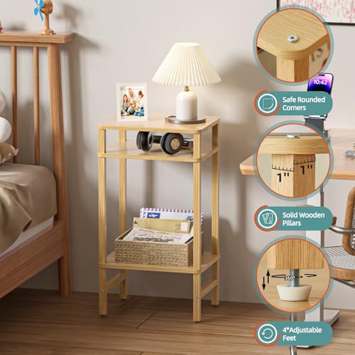 28in Tall Bamboo Side Table 3-Tier Small Narrow End Table, Skinny Nightstand for Small Space, Farmhouse Slim Night Stand with Storage for Couch, Wooden Thin Bedside Table, Natural
