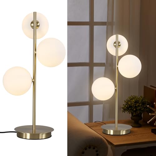 1.[Mid century design]:This glass globe table lamp use 3 white glass globe lampshade and gold lamp body,this mid century design allows this lamp to add a modern feel anywhere.This is a lamp that can make your home more elegant.