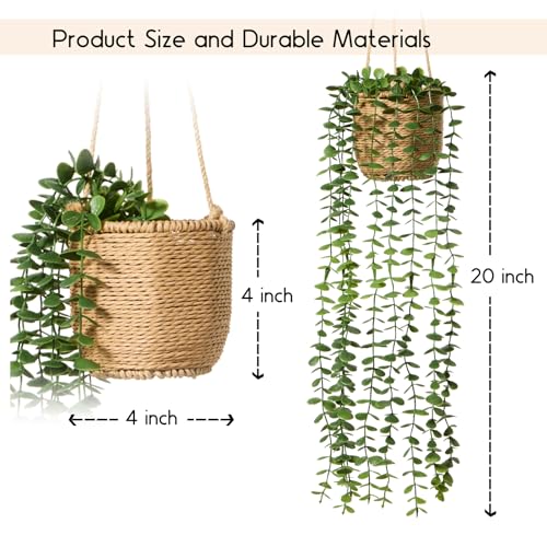 Long Size and Durable materials: Made of premium plastic, handwoven paper rope baskets, and sturdy iron frames. Each potted plant is 4″ wide, 20″ tall, and 33″ including hanging rope. The long, trailing design is perfect for higher placements, tight corners, and empty walls