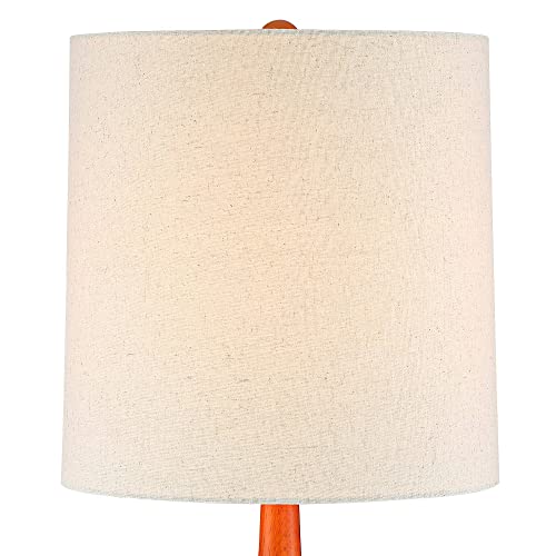 360 Lighting Andi Mid Century Modern Table Lamps 24 1/2″ Tall Set of 2 Brown Hammered Ceramic Red Oak Wood Off-White Fabric Shade for Bedroom Living Room Bedside Nightstand House Home Office