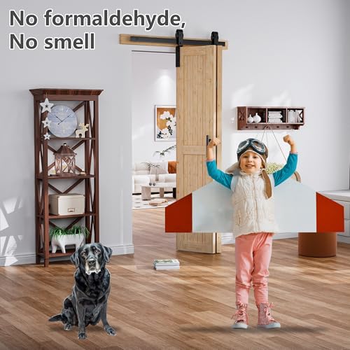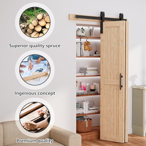 36″x84″ No-Assembly Bi fold Barn Door, with 40″ Bifold Barn Door Hardware Kit for 2 Doors, Unfinished Solid Spruce Wood Panel, Pre-Drilled and Assembled,Including Handle and Pulls
