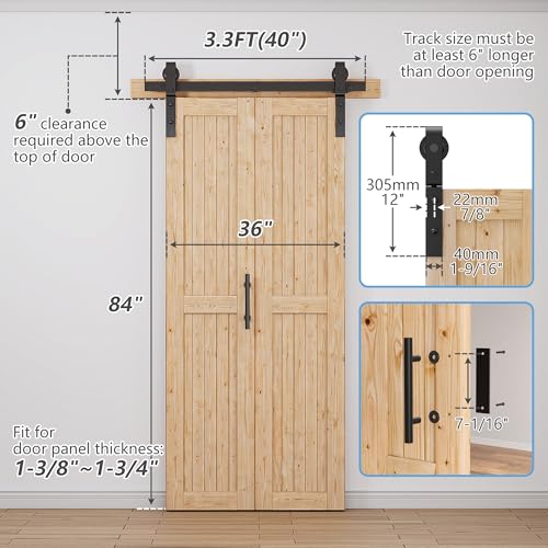 Assembly-Free Doors : Our bi-fold barn door hardware kit includes assembly-free doors with 40” barn door track , reducing installation time and effort for a hassle-free setup in your home or office.