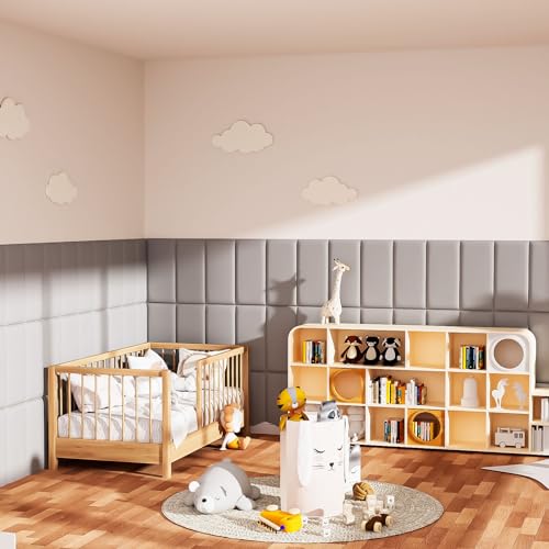 3D Anti-Collision Wall Padding for Kids, Grey Peel and Stick Headboard Pack of 4 Panels Sized 7.8″ x 15.7″, Self-Adhesive Panels for Bedroom/Living Room Upholstered Wall