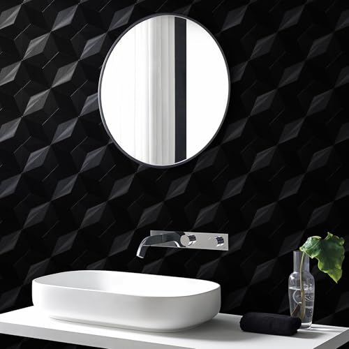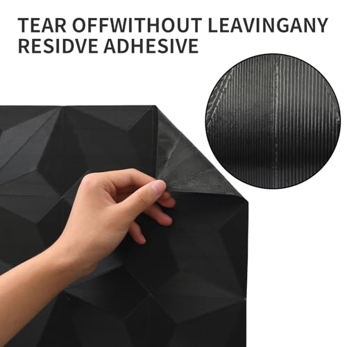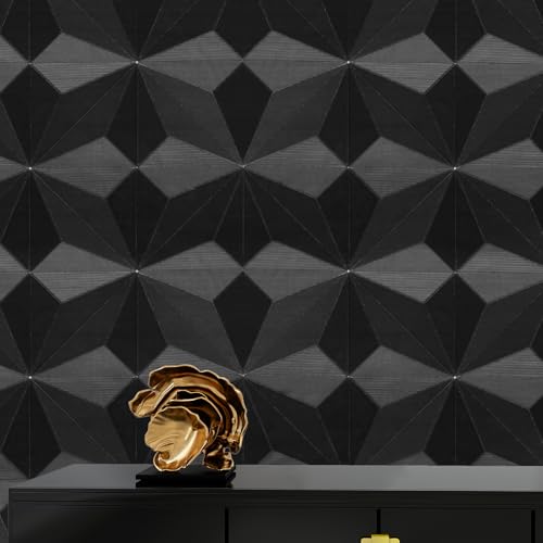 Striking 3D Geometric Peel and Stick Wallpaper: Unique octagonal diamond texture creates depth beyond flat patterns; Intricately embossed black wallpaper mimics high-end finishes; Transforms walls into art with vivid geometric motifs; Adds modern elegance to bedrooms living rooms or accent wall panels
