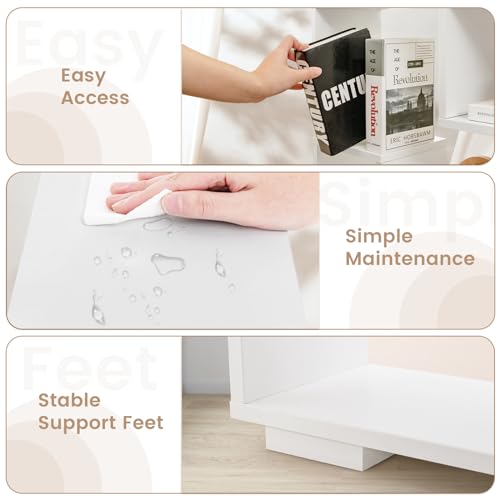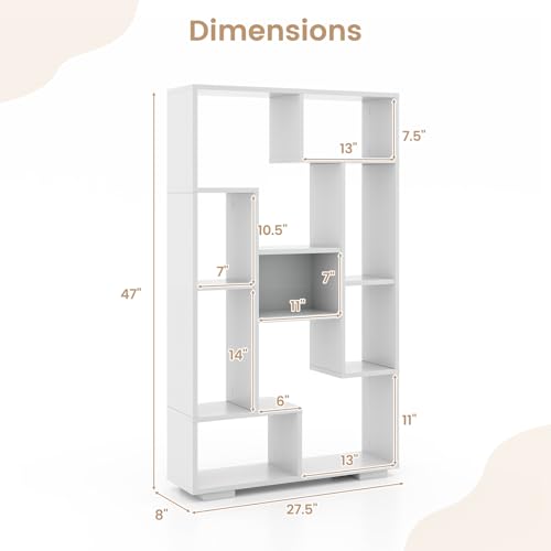 47″ Tall Geometric Bookshelf, Etagere Bookcase with 9 Open Cubbies, Wooden Bookshelves & Bookcases, Freestanding Book Shelf Storage Organizer Display for Living Room (1, White)
