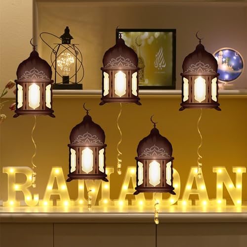 5pcs Brown Aluminum Foil Lantern Balloons for Ramadan Eid Mubarak Party Decorations