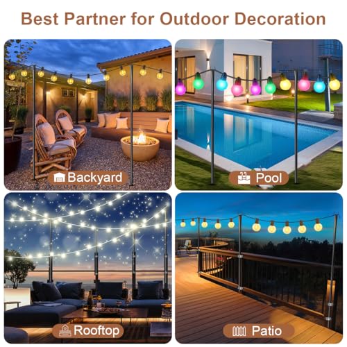 【Best Partner for Outdoor String Lights】These string light poles are a perfect helper to decorate your solar string lights outdoor, enhancing your patio, backyard, front porch, yard, garden, rooftop, pool or anywhere you want to create a warm vibe. Safely hang various patio decor such as string lights, lanterns, banners, flag, and more with ease to transform your space into a cozy haven.