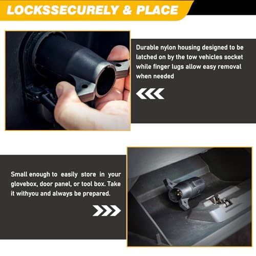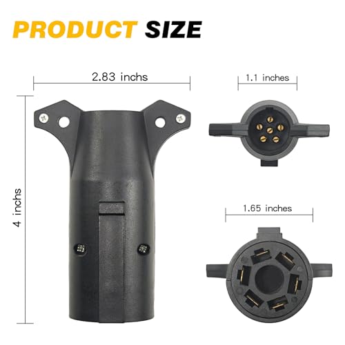 PRACTICAL DESIGN: This 6-way trailer plug adapter is developed with full consideration of ergonomic principles and can be effortlessly plugged into trailer wiring and trailer lights. It has grips on both sides for a more stable grip when being plugged into or unplugged from a vehicle.
