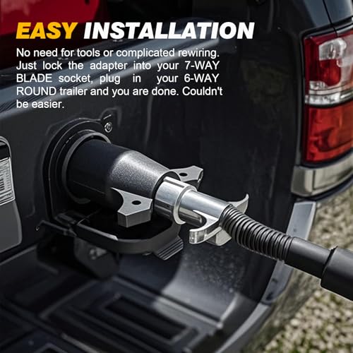 PAINLESS INSTALL: Plug and play. Our 6 pin to 7 blade trailer adapter can be readily installed or revoked without any tools. Lock the adapter firmly into the 7 way blade socket. Then insert the 6 way round trailer plug. The operation is supposed to be very convenient.
