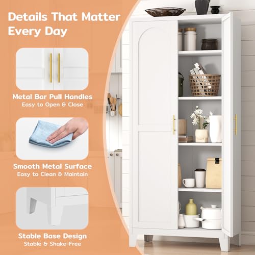 70.87” Tall Metal Pantry Cabinet with 2 Doors, Freestanding Kitchen Storage Cabinet with 4 Adjustable Shelves, Steel Cupboard for Kitchen, Pantry, Dining Room, Living Room, Bathroom, White