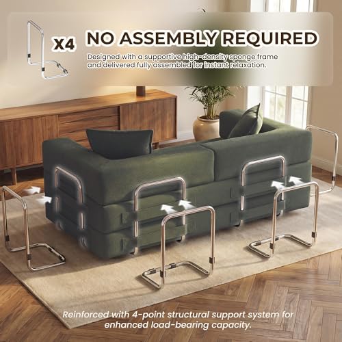 [Tool-Free Assembly & Instant Readiness]: This Convertible Sofa Bed features a unique fixed-shape frame and requires no assembly, arriving fully ready for use. Simply unpack your sofa bed couch, let the high-density foam rebound for 48-72 hours, and snap the metal support framework into place tool-free. Set up your new boneless couch in minutes for home, office, or waiting room use