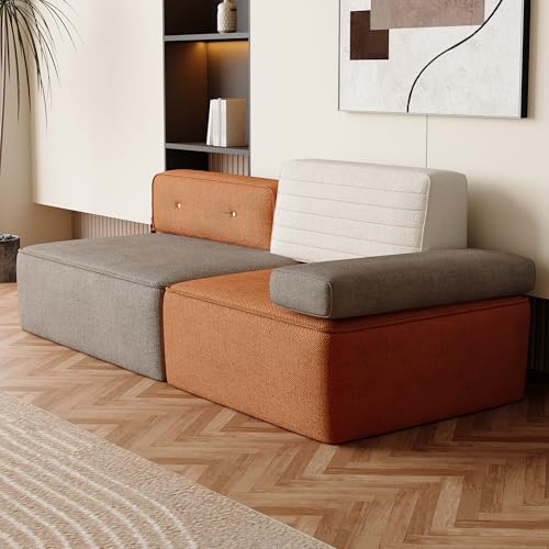 【Modern Multi-Tone Design】Stand out with a stylish three-color design in beige, brown, and orange. This artistic color-blocked sofa adds a bold, modern touch and blends perfectly with contemporary, minimalist, or eclectic decor.