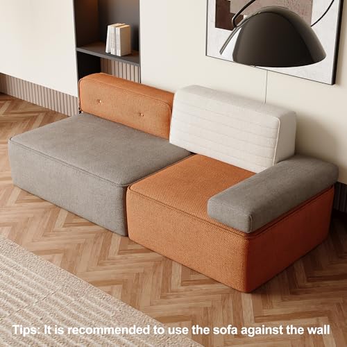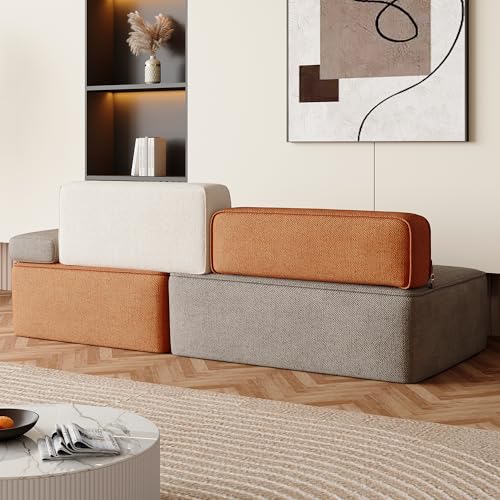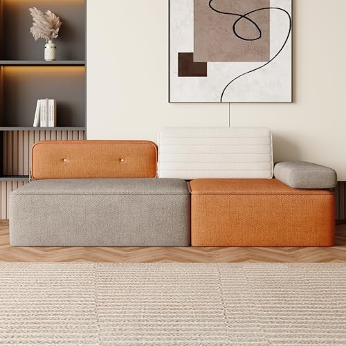 79.9″ Modular Sofa Couch, Modern 3-Seater Sectional with Detachable Backrest, Deep Seating Comfortable Sofa for Living Room, Apartment, or Office, Multi-Tone Beige/Brown/Orange