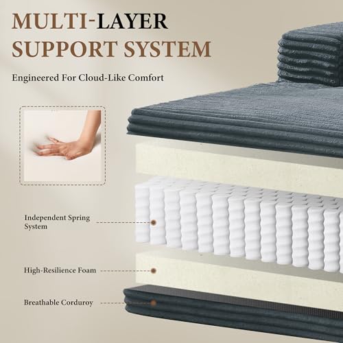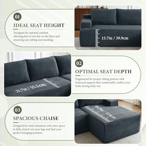 Premium Corduroy Fabric: Upholstered in high-quality, soft-brushed corduroy, this sofa offers a uniquely inviting texture that is both durable and long-lasting. The robust fabric resists daily wear and tear, ensuring the rich color and plush feel remain vibrant and new-looking for years to come, adding a touch of timeless elegance to your decor.