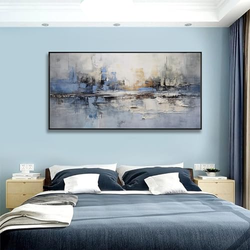 Abstract Wall Art Blue and White Reflection Large Size Framed Artwork Wall Decor Canvas Painting Stretched Canvas Wooden for Living Room Bedroom Office Home Decor Frame ready for hanging 30″x60″
