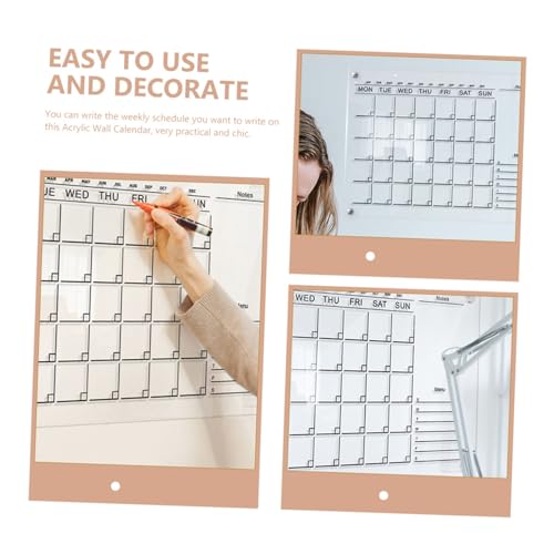 Acrylic Hanging Calendar Board Wall Month Planner Minimalist Erasable Message Board with Whiteboard Pen and Pins for Weekly Scheduling Home Office Organization Random Color