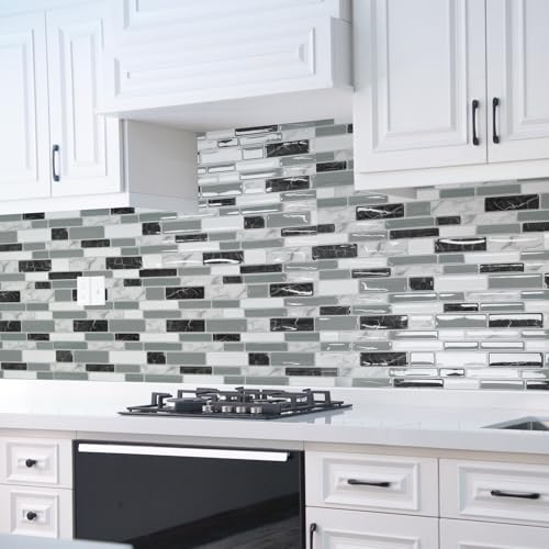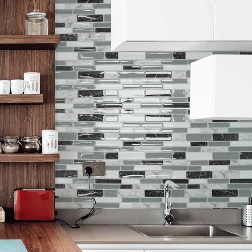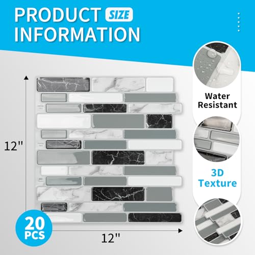 Art3d 20-Sheet Peel and Stick Kitchen Backsplash Tiles, Self-Adhesive Wall Tiles for Kitchen and Bathroom, 12″x12″, Marble Grey