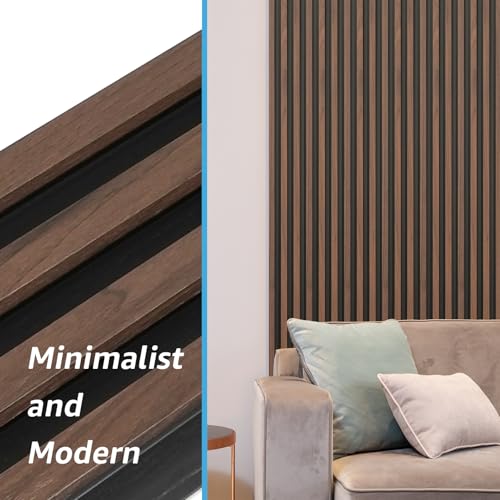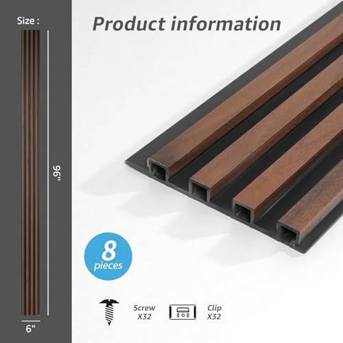 Art3d 8-Pack WPC Wood Slat Wall Panel for Interior Décor, 3D Wood Fluted Acoustic Wall Paneling for Living Room Bedroom Home & Office Accent Decor – 96 x 6 Inch Walnut