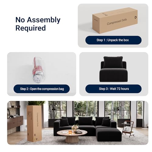 Zero Assembly & Quick Expansion: This modular sofa ships in compressed packaging and requires no tools or assembly; simply unbox, unroll, and watch it expand to its full size, ready for instant use in your living room or apartment—saving you significant time and effort while delivering immediate comfort (note: full fluffing may take up to 72 hours).