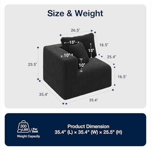 Avenco 35.4” Left-Arm Facing Modular Sofa Seat, Individually Wrapped Coil Support & Corduroy Fabric, Zero Assembly for Sectional or Accent Chair, Black