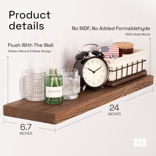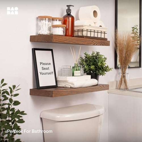 BAOBAB WORKSHOP Wood Floating Shelves Set of 2 – Rustic Shelf 24 inch – Floating Shelf for Wall Mounted – Wide Wooden Wall Shelves for Living Room Bedroom Kitchen Bathroom – Walnut – 24D x 6.7W