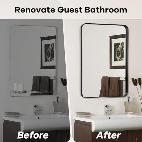 Alumium Alloy Frame for Easy Hanging – The lightweight bathroom mirror is wear-resistant, sturdy, also won’t fade, and the aluminum alloy makes the sink mirror less bulky that can be moved and installed easily, as well as quality. Meanwhile, the thick metal back plate can hang the ractangular mirror firmly on the wall