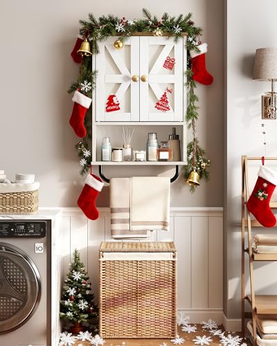 Bathroom Wall Cabinet, Medicine Cabinet with Open Partition and Towel Bar, Rustic Storage Cabinet with Open and Hidden Storage Space, for Bathroom, Living Room, Kitchen, White and Walnut