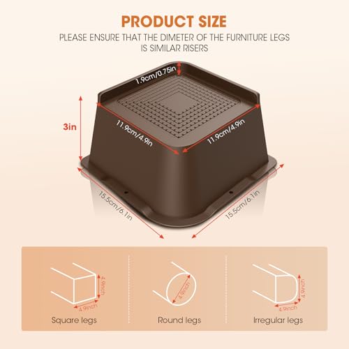 Bed Risers Heavy Duty, Oversized Furniture Risers, Support Up to 6000 Lbs, Lift 3 inch for Couch, Sofa, Table,Chair (Dark Brown 4 Pack, 3 inch)