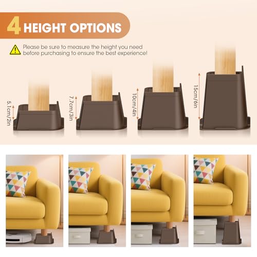 Extra conveniences; This bed risers not only can elevation furniture to 4 inch to create extra space for storage, but also can lifts furniture up to makes your home easy to clean