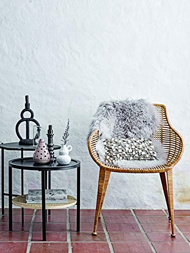 Bloomingville Boho Round Metal Accent Table with Tray Style Top and Handwoven Bamboo Storage Shelf, Black and Natural
