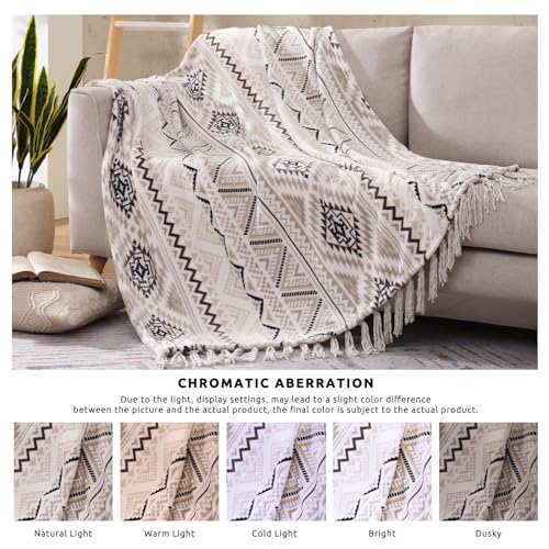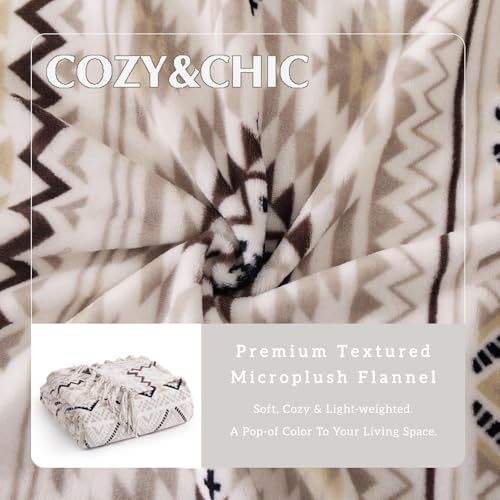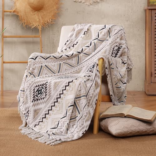 CASAAGUSTO Boho Throw Blanket Beige and Gray Printed Flannel 50 * 60