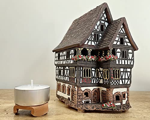 Ceramic Miniature Replica of The Original House in Kaysersberg, France, Tea Light Candle Holder Home Decor Small Clay Tiny House