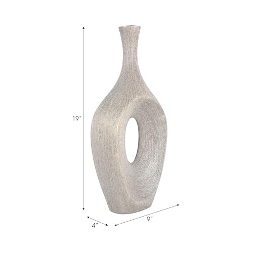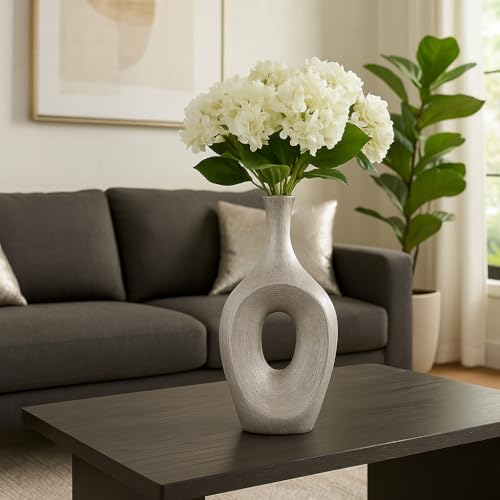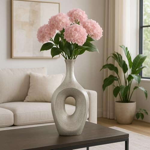 Ceramic Vase for Living Room Decor – Flower Vase for Home Decor – Eye-Catching Room Accent for Bedroom, House, and Office – Modern Table Centerpiece or Bookshelf Accent – 19″, Silver