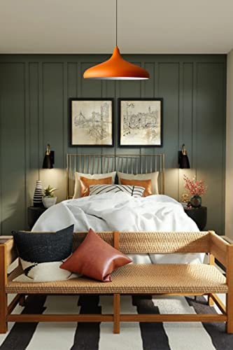 MATERIAL & COLOR: The material of the dining room light fixture is metal. The diameter is 13.7″ and the height of the pendant light fixtures is 7.8″. The color of the pendant lights kitchen island is orange. The inside of the nordic modern hanging lamp is white