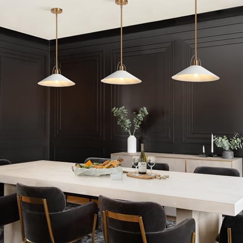 Versatile Installation, Varied Scenes: Effortlessly install the gold and white pendant lights as a singular statement or in a pair for symmetrical sophistication. The minimalist design complements various settings, whether over a cozy breakfast nook, kitchen island, dining room, bedside, or a grandiose entryway.